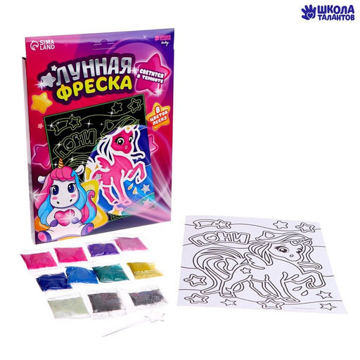 Набор для творчества. Лунная фреска Единорог, светящийся песок + блёстки