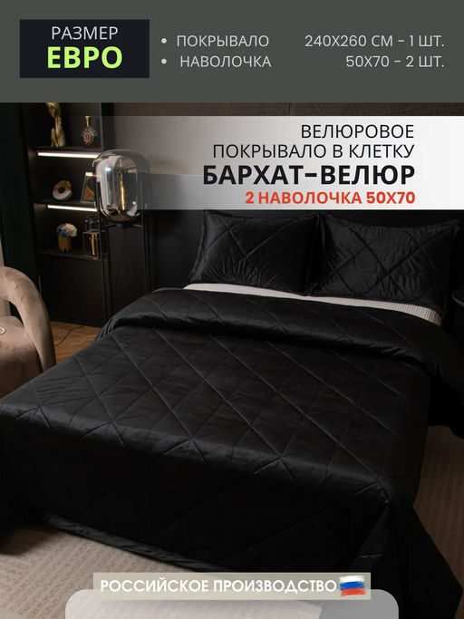 Велюровое покрывало в клетку и две наволочки OVL047 240*260/50-70 2 шт