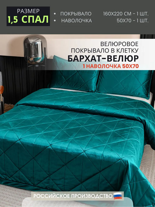 Велюровое покрывало в клетку и две наволочки OVL045 160*220/50-70 1 шт