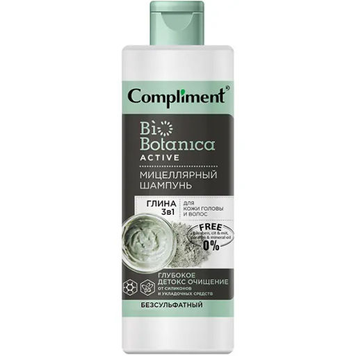 "Compliment" Biobotanica active Глина 3 в1 Шампунь мицеллярн д/кожи головы и вол.(380мл).15 /879403/