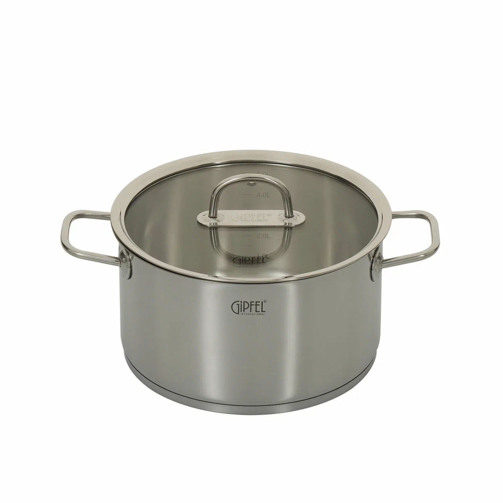 2700 GIPFEL Кастрюля CAPELLA 3,7л/20х13см, нержавеющая сталь 18/10, стеклянная крышка. Толщина: 0,6
