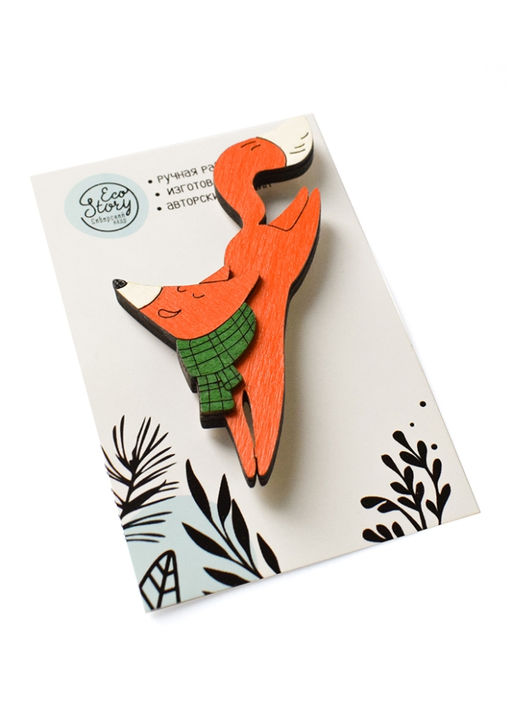Деревянная брошь Лисичка в прыжке