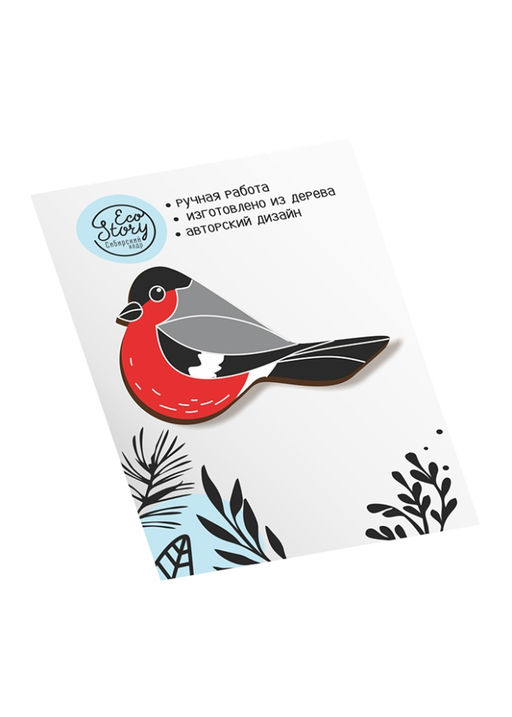 Деревянная брошь Снегирь