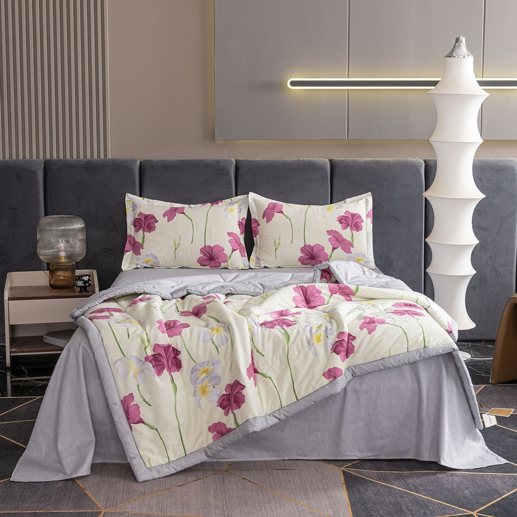 Комплект постельного белья Сатин с Одеялом 100% хлопок на резинке OBR155 Евро/50-70 2 шт