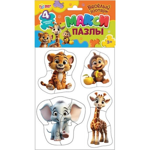 MAXI-пазлы "Веселый зоопарк" (ш/к 30563, 368500, "Умные игры") 4 больших пазла