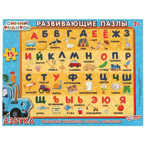 Пазл фигурный 285*215мм "Синий Трактор. Азбука" 15 элементов (ш/к11210, 368508)
