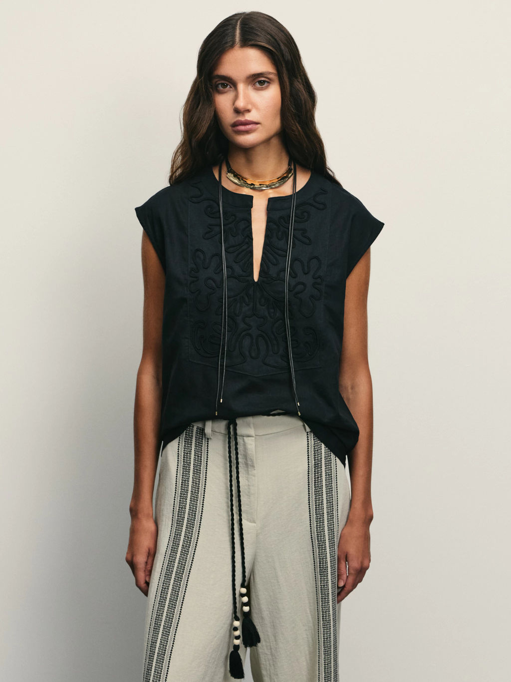 Блузка из смесового льна с вышивкой / Zarina