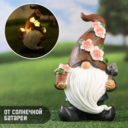 Садовый фонарь "Гномик садовод" 13х16х27см