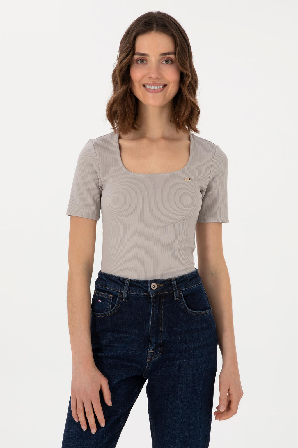 Kad_n Gri Melanj Ti__rt Sepette S_rpriz _ndirim