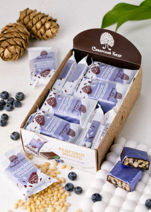 Батончик Кедровое золото с черникой, 630 г | шоу-бокс 18 батончиков