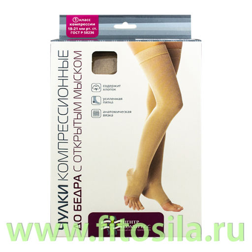Чулки компрессионные до бедра с открытым мыском 1 класс компрессии, Типоразмер № 2 ПАРА. Цвет - кремовый. Артикул -Ч1(п)-К