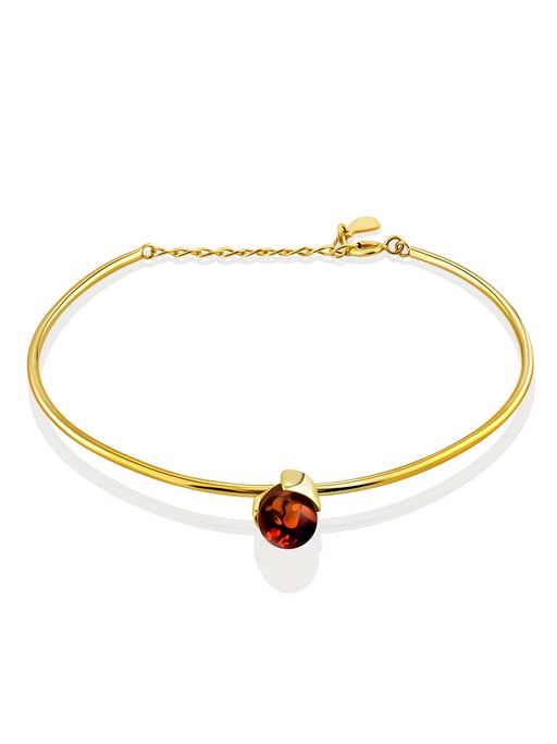Стильный браслет-обруч Palazzo из золочёного серебра и янтаря от ifamore
