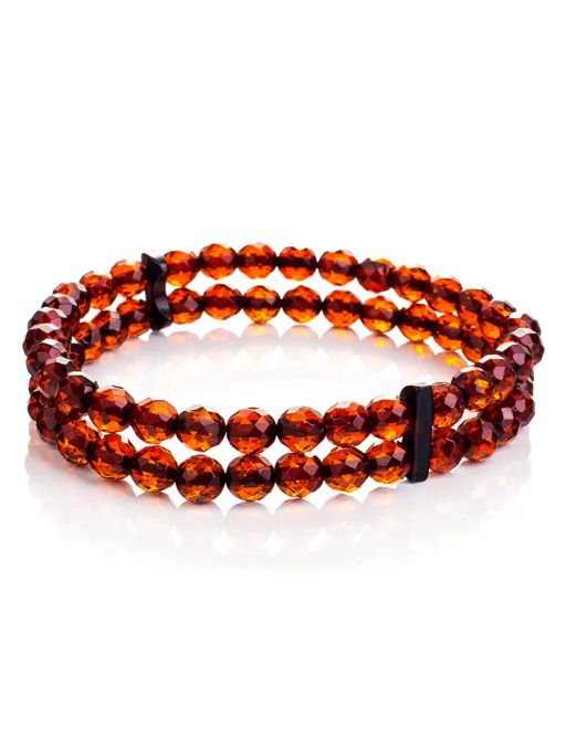 Двухрядный браслет из натурального цельного янтаря Карамель алмазная вишнёвая