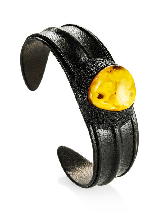 Браслет из натуральной кожи и янтаря Нефертити