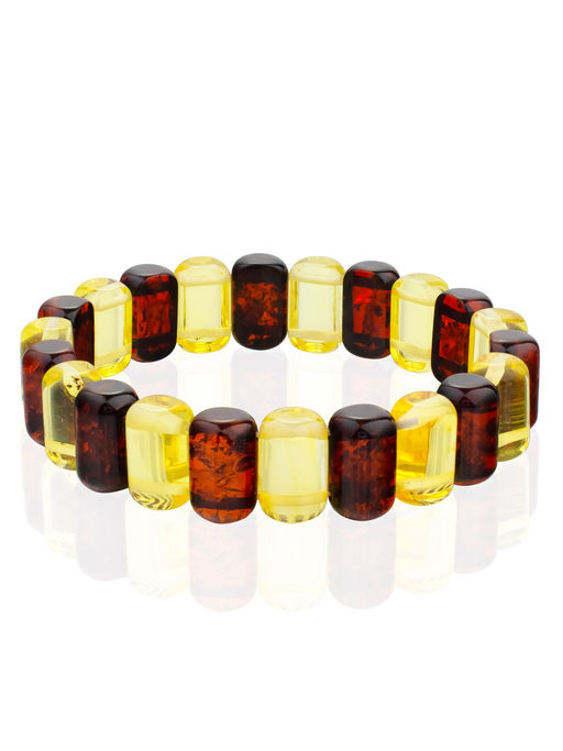Яркий браслет Бочонки лимонные и вишнёвые из натурального янтаря
