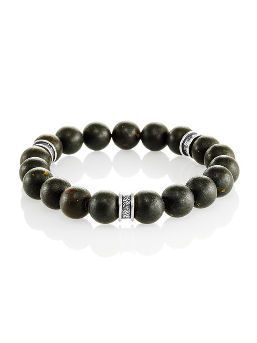 Стильный браслет из чёрного янтаря с декоративными вставками Куба