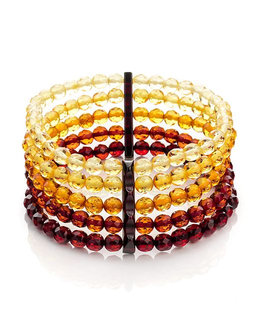 Эффектный пятирядный браслет Карамель алмазная градиентная из натурального балтийского янтаря