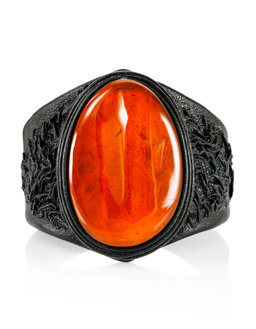 Эффектный браслет из натуральной кожи и яркого коньячного янтаря Амазонка