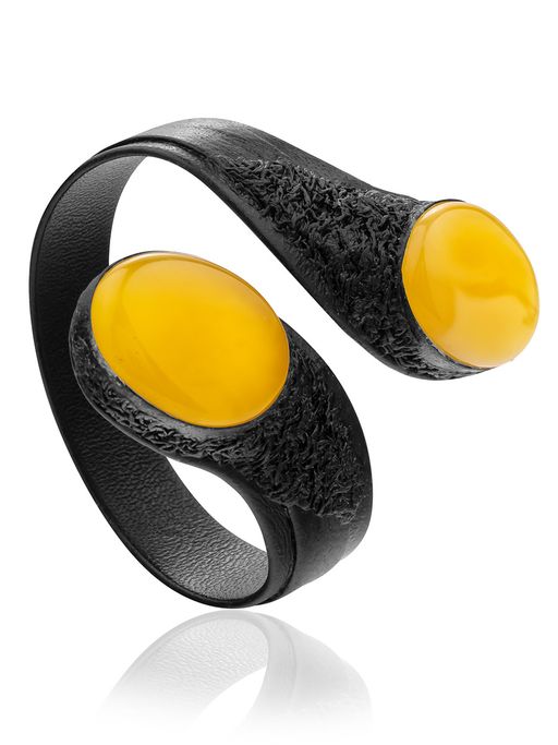 Оригинальный браслет из кожи Змейка с натуральным медовым янтарём