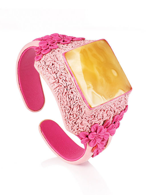 Яркий браслет из натуральной кожи и медового янтаря Нефертити
