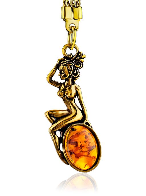 Дева. Брелок с вставкой из натурального коньячного янтаря