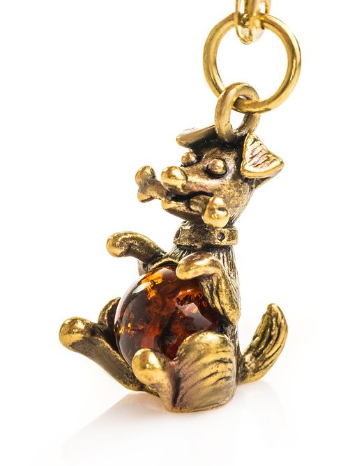 Брелок с забавной собачкой, украшенный натуральным янтарём