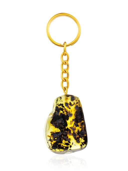 Брелок с кусочком красивого коньячного янтаря природной формы