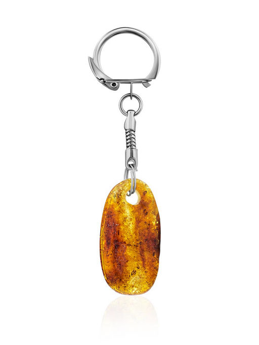 Брелок с кусочком текстурного коньячного янтаря природной формы