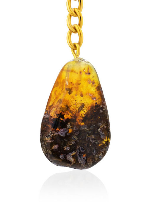 Брелок с кусочком текстурного коньячного янтаря природной формы