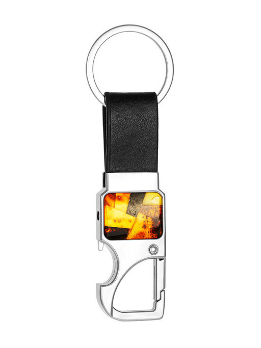 Брелок с карабином, украшенный пестрой янтарной мозаикой