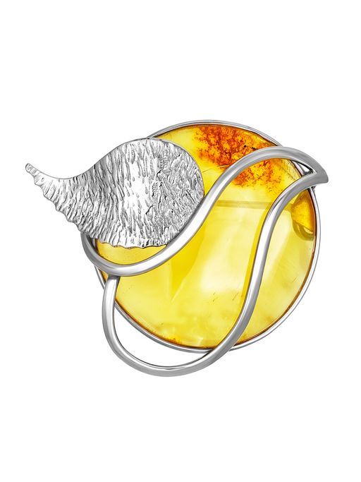 Стильная брошь из серебра и натурального полупрозрачного янтаря