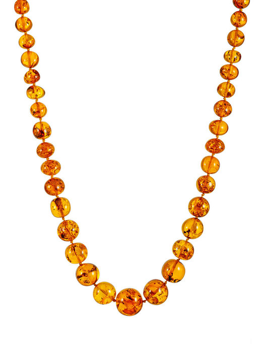 Эффектные бусы Мятый шар из натурального балтийского янтаря золотисто-коньячного цвета