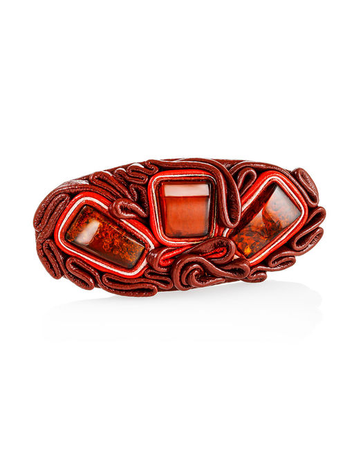 Необычная заколка Амазонка из кожи и натурального цельного янтаря