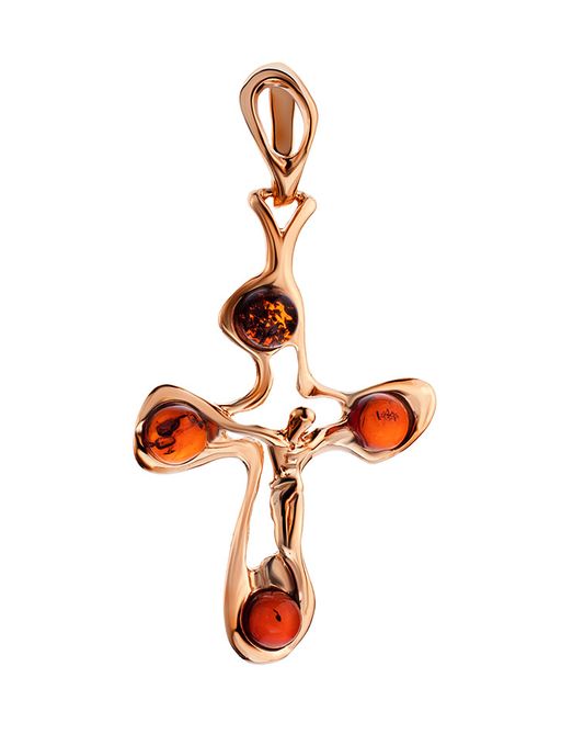 Оригинальный крестик из позолоченного серебра и янтаря вишнёвого цвета