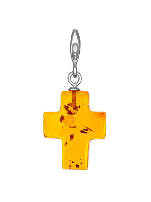 Подвеска-крест из натурального балтийского янтаря коньячного цвета