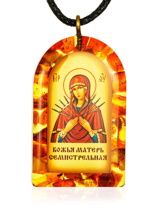 Подвеска-иконка Богородица Семистрельная в янтарной оправе