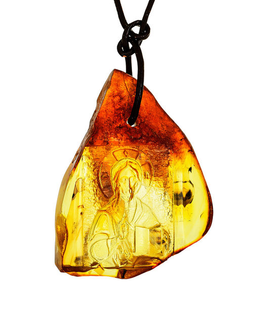 Резной кулон-икона из натурального цельного янтаря Спас