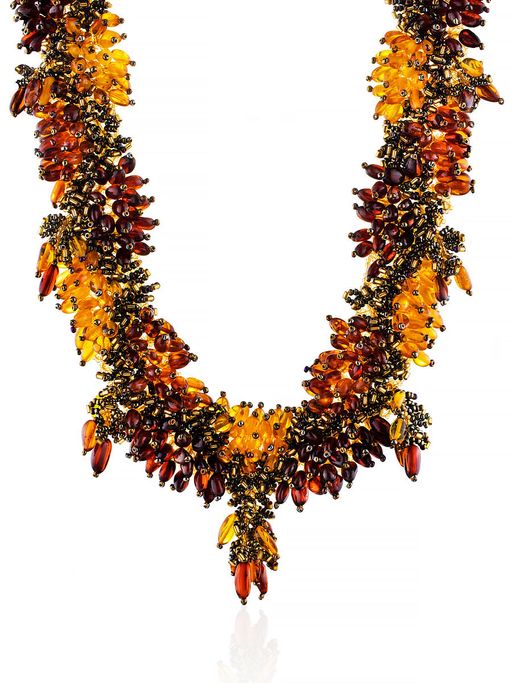 Роскошное колье Лукоморье из бисера и натурального янтаря