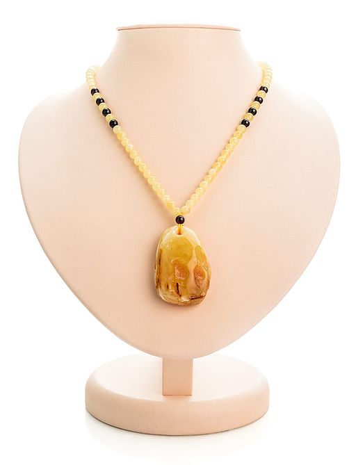 Колье Лаура из натурального цельного янтаря медового цвета