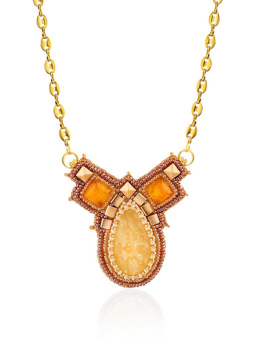 Оригинальное короткое колье из натурального янтаря и бисера Лукоморье