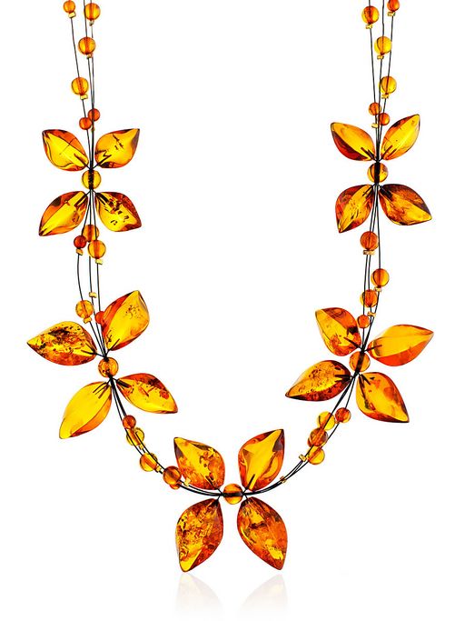 Нарядное колье из натурального цельного янтаря на струне Первоцвет