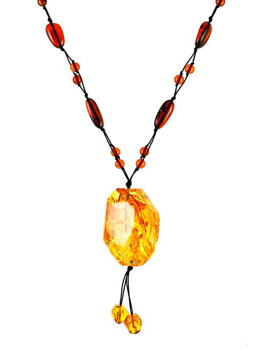 Яркое колье Мадагаскар с крупной подвеской из гранёного янтаря с инклюзами