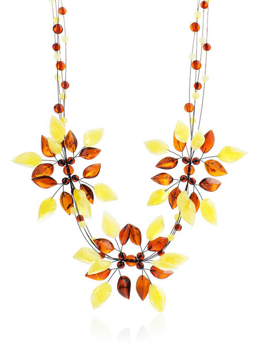 Объёмное колье из натурального янтаря Первоцвет