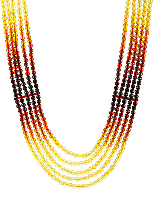 Роскошное колье из натурального янтаря Карамель градиентная. Алмазная грань