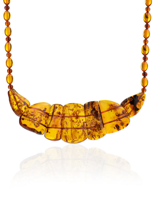 Яркое эффектное колье из натурального цельного янтаря