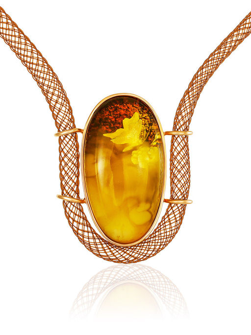 Колье-чокер на эластичном жгутике с янтарным медальоном, украшенном резьбой Элинор