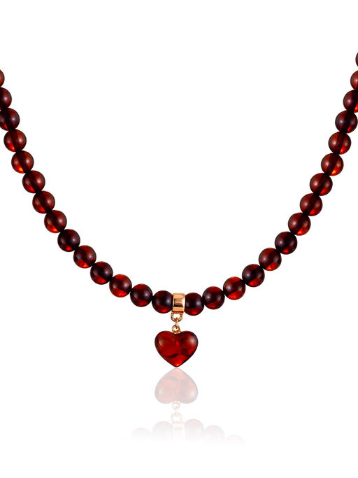 Яркий чокер из вишнёвого янтаря с подвеской-сердечком Карамель