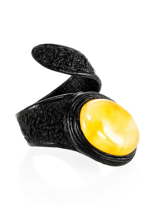 Кольцо ручной работы из кожи с натуральным медовым янтарём Змейка