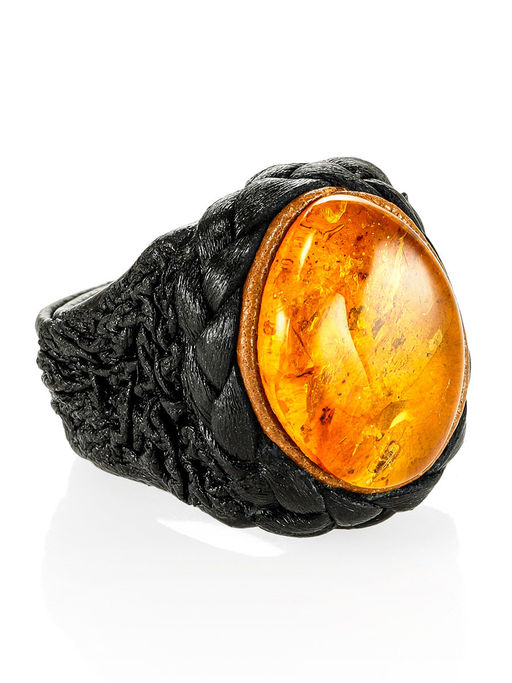 Перстень из кожи и натурального янтаря Нефертити в этническом стиле