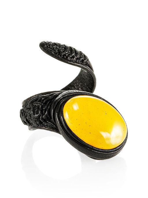 Стильное кольцо Змейка из кожи и натурального янтаря